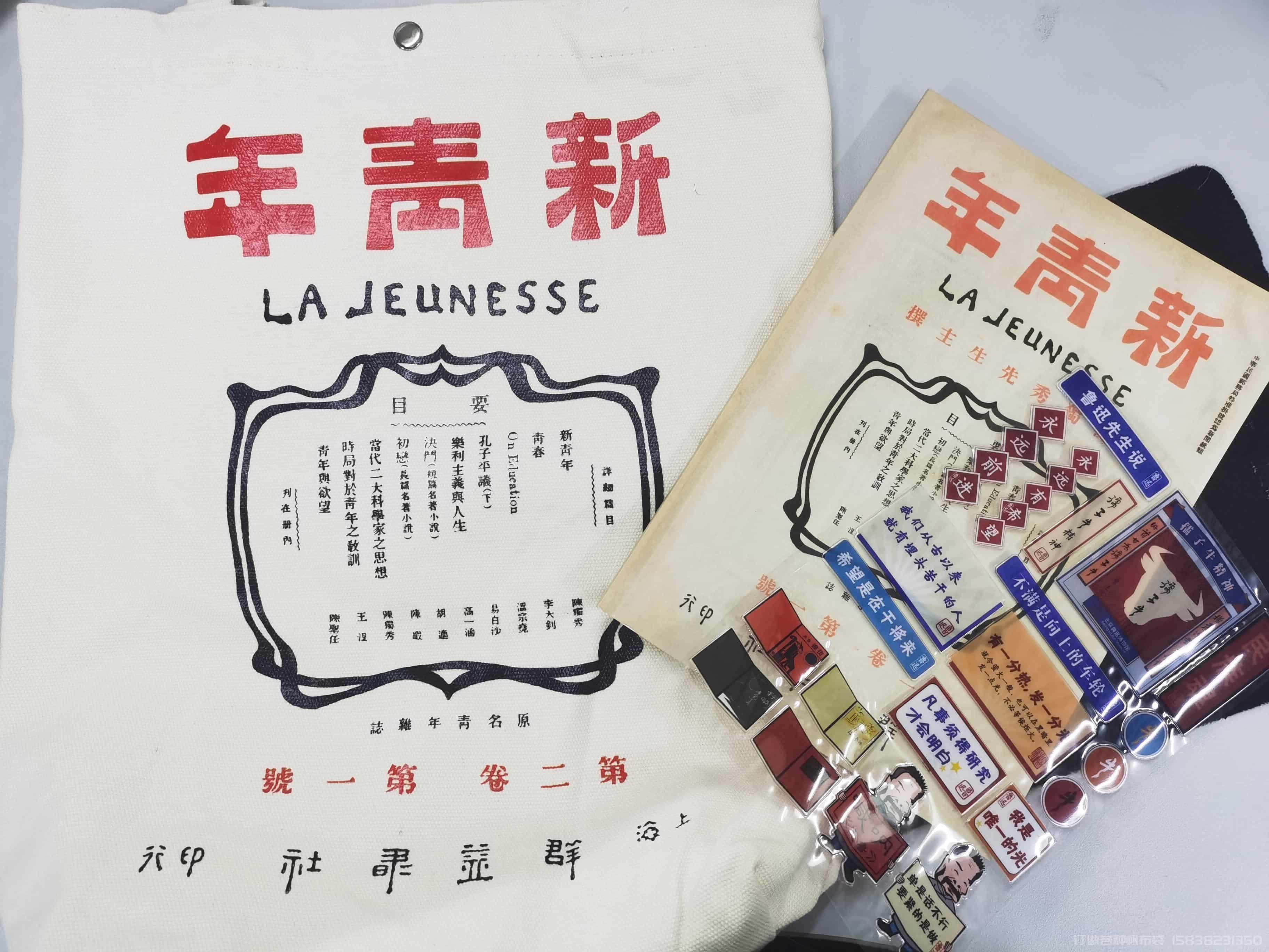 所謂“網紅周邊”,即《新青年》以及魯迅相關的文創產品,其中包括印有《新青年》封面的帆布包、《新青年》字樣的筆記本,還有魯迅名言貼紙、印有魯迅作品名的鉛筆袋、魯迅手繪小說封面的明信片等。這些產品在某社交平臺正成為“流行文化”,被無數年輕人追捧著。熱愛《覺醒年代》的觀眾們稱之為“最硬核的周邊”,并表示“只要在大街上看到戴同款的,都要喊姐妹”。