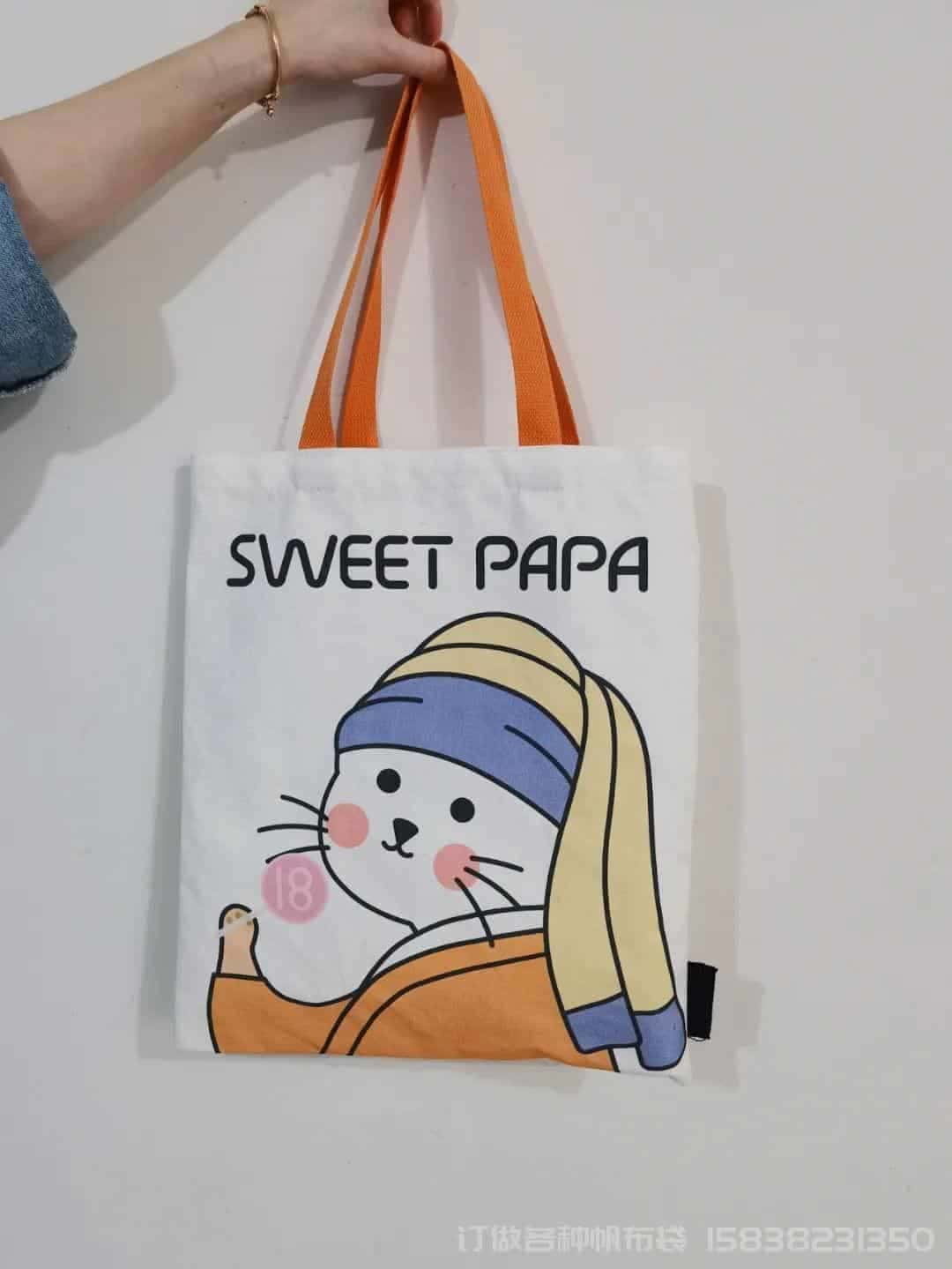 這款帆布袋在設計初期和設計師溝通了差不多了8個設計稿,最后定了這個圖案,相信很多朋友一眼就能認出是那幅世界名畫《戴珍珠耳環的少女》改編而來。之所以最終選了這個形象,是源于我心中對大家的祈愿,“永遠18歲”,不是希望你們永遠18歲,而是:你們就是18歲!不管幾歲,心態永遠18歲,所以用了這個少女的形象來表達你們在我心中的樣子,以及你們背著這只包時心里想的是,我永遠18歲,不管是背著去買菜還是裝著孩子的東西外出,心里都是雀躍歡愉的。