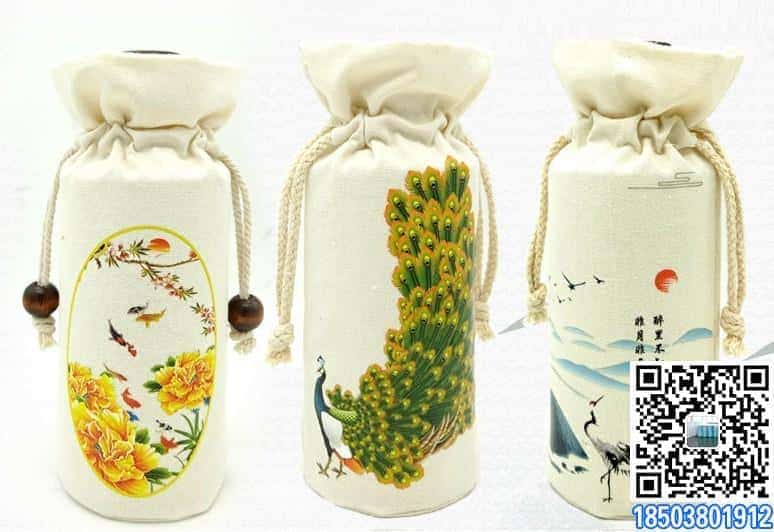 訂做各種中高檔適用織錦緞白酒包裝袋、麻布包裝袋、時尚絨布包裝袋、棉布包裝袋、抽繩束口袋等包裝袋等。