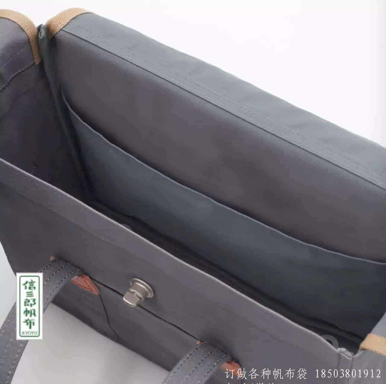 首先,他們嚴選材料。帆布供貨商是合作了大半個世紀的“老伙計”朝日加工廠,他們家生產的全棉帆布每平方公尺重 227 克,厚實堅韌,而且有非常嚴謹的防水處理。