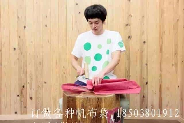 由于帆布厚且硬的特質,一澤家的帆布制品在裁剪之后和上縫紉機之前,會多出一個由木槌捶打成型的工序。