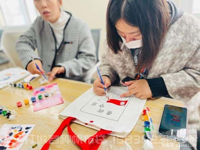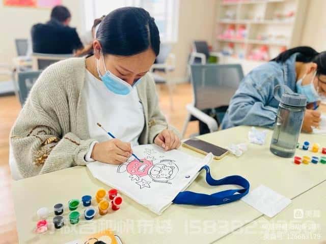孕婦學校老師為大家精心準備好制作帆布包的材料,孕媽們首先構思好自己喜歡的款式,在手工老師的指導下,忙得不亦樂乎,課堂里傳來陣陣歡聲笑語,在制作過程中,大家一起討論制作方法,彼此間交流孕期經驗,共同憧憬寶寶未來,孕媽們在課堂上建立了友誼,活動現場顯得格外的溫馨和溫暖。