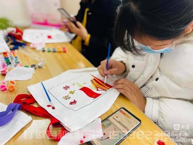 映象網訊 (大象新聞記者 張定有 通訊員 王偉 黃鑫 張攀)新野縣婦幼保健院孕婦學校為了滿足孕產婦的需求,不斷創新課程內容,10月7日,特別為孕媽們開展了國慶元素帆布包DIY制作活動。