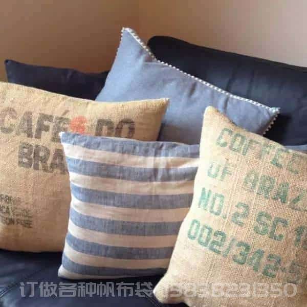 沙發上的抱枕也可以用麻布,