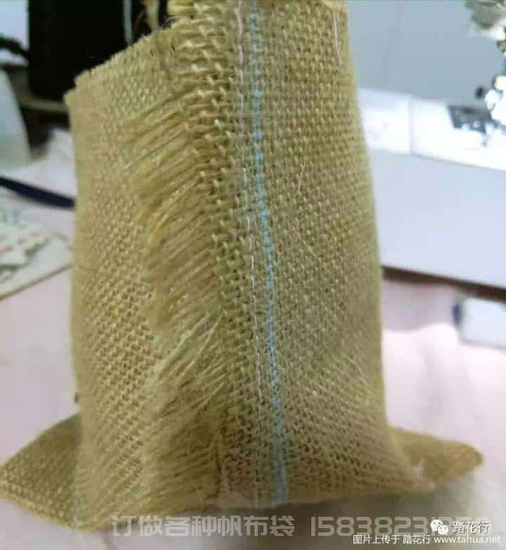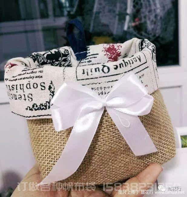 好啦!一個完成的外層就做好啦。把它從內到外翻過來。然后,拼接的第二個步驟,里層的拼接。這個很簡單。重復外層拼接的步驟就可以啦。兩個一毛一樣的袋子,里層不需要翻過來,直接套進麻布袋的里面。馬上就要完成了,都有一點小興奮了是不是?隨便找塊廢布料,卷起來做成繩子,剪下來大概6厘米左右的長度,如下圖,放置在雙層布袋的里層,然后縫上,這里要特別注意,一定要把兩層都縫上,為了牢固起見,可以多走兩趟線,到現在,一個完整的雙層布袋就完成了,把邊緣從內向外翻出來一些,大小長度視個人喜好決定。我的建議是不收邊,甚至連邊緣,飛起來的麻線都不整理,這樣才更具隨意感和田園風。最后一步,裝飾。用絲帶做一個蝴蝶結,隨意用線頭綁就可以,綁好以后形態稍稍調整一下就好。然后用熱熔膠粘上。因為我是經常做手工,所以特地準備了香薰蠟燭,這樣就可以聞著香味做手工,心情也好好。最后,大功告成!很有成就感有木有?由于粗麻布本身有一定的硬度,所以用來做收納盒也滿能勝任的。如果不是用來懸掛,只是收納的話,裁剪的時候尺寸可以大一些。因為是晚上制作的,邊做邊拍照,步驟和照片可能會有疏漏的,大家如果有不明白的地方,歡迎下方留言咨詢。