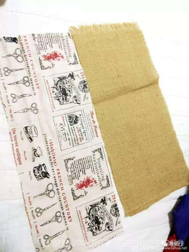 實用又美觀的麻布收納袋,從墻上摘下來,還可以做筆筒用,而且制作過程簡單,手殘黨也可以分分鐘拿下。接下來給大家分享一下詳細制作過程。我是用縫紉機做的,家里沒有縫紉機的朋友們可以直接針線縫制。 首先準備好布料,需要兩種,1:粗麻布,做袋子的外層。2:印花帆布,做里層。也可以用廢棄的床單,襯衫等,只要沒有彈力的,都可以。
