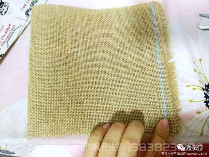 第二步:裁剪。考慮到承重問題,做的比較小,成品口徑能放15厘米口徑的花盆進去。太大的話會壓變形,失去美觀。把麻布和帆布都裁剪成大小一致的長方形,長40厘米,寬18厘米。如果不喜歡這個尺寸,可以自由調整一下。但是切記,里和表的尺寸一定要一致,或者里層帆布尺寸可以稍小一點點,不要超過一厘米。