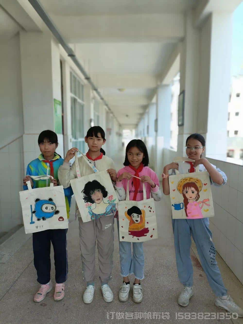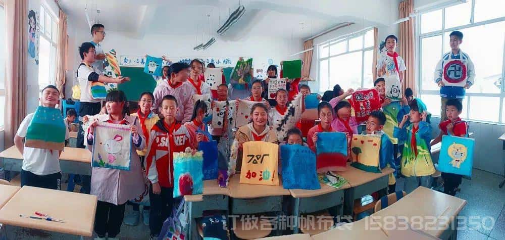 荷花鎮中心小學鄉村學校少年宮:創意帆布袋,繪畫童心夢