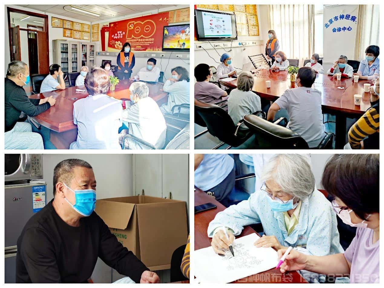 10月12日,門診辦(社工部)在神經內科開展關愛老年患者小組活動。醫務社工帶領老年患者回顧古代和現代重陽節的來由之后,通過破冰游戲“心靈潛航”、“與我最相似”活躍氣氛。在健康科普環節,醫務人員為老年患者們講解了腦卒中識別的“befast”原則。在醫患共建“帆布袋彩繪”環節,患者、醫護人員在醫務社工的引領下,一同在帆布袋上涂繪出了一幅幅精美的圖畫,并為帆布袋賦上了和諧、愛、童真等美好寓意。本次活動在給患者帶去健康知識的同時,又能搭建一個醫患互動的平臺,讓病房生活變得更加豐富多彩。