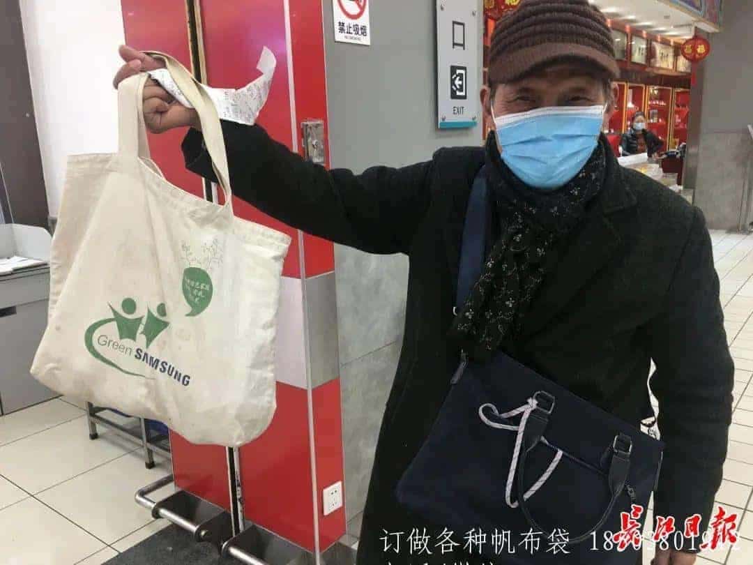 “以前覺得帶袋子很麻煩,現在習慣了就還好,畢竟購買一個購物袋也不便宜。”在永旺金橋店購物的市民劉女士表示,隨身裝一個袋子節約又環保。