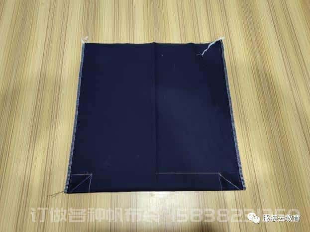 4、將袋布沿中心線進行對折,然后合側縫;