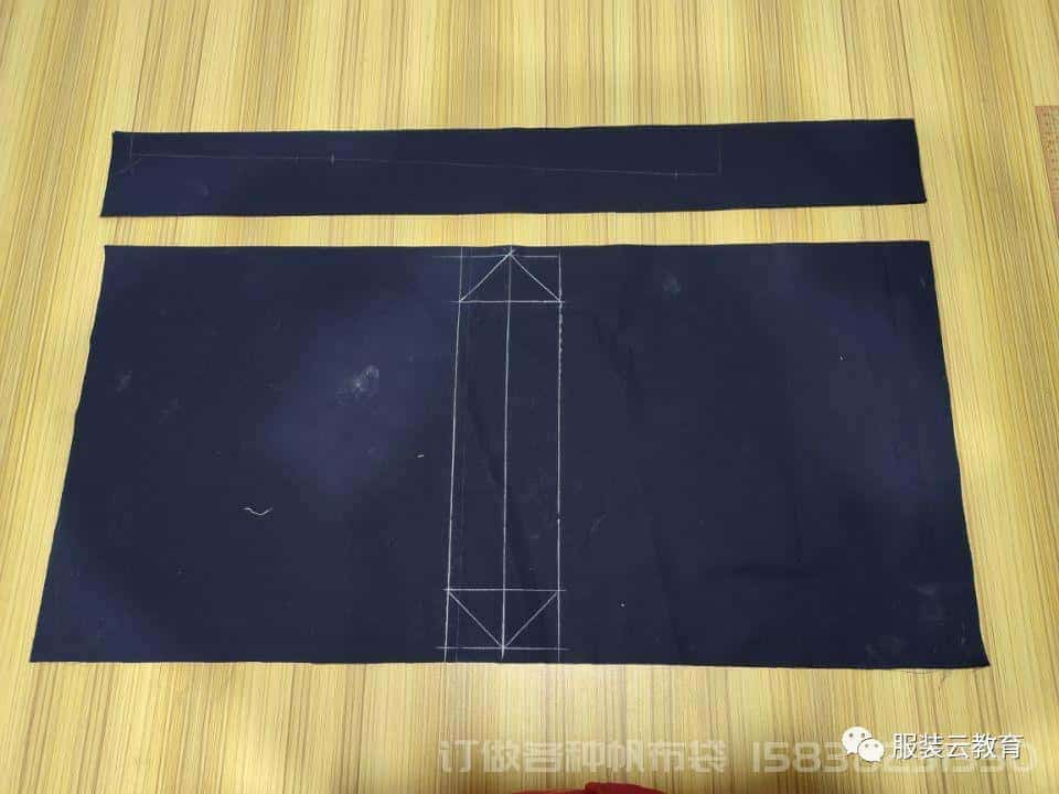 2、將紙樣在面料上進行排版,然后裁剪出所需的裁片;