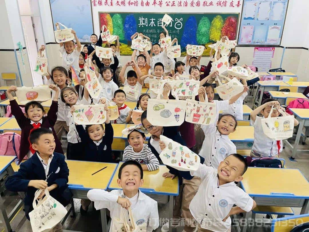 當童趣遇上創意,當帆布袋遇上色彩,一場趣味無窮的帆布袋彩繪DIY活動在云大附屬會展學校的一年級教室如火如荼地展開了。本次活動旨在鍛煉孩子們的動手能力,培養藝術興趣,同時讓他們樹立良好的環保意識。相信他們,只要大膽的動手,就能夠繪制出獨一無二的、屬于自己的最炫創意帆布袋。