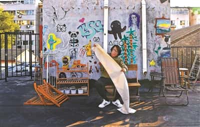 租住在胡同里的二狗沒有那么大的空間,他就爬上三層公寓的天臺,把這里當作自己改造舊物的平臺。那里通風空曠,避免了改造時造成的粉塵和噪音。