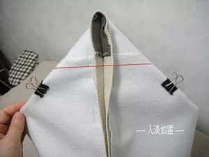 ▼7.把拉鏈內(nèi)袋縫好,如圖紅色線,注意只是縫內(nèi)袋,不是把內(nèi)袋和里布縫在一起: