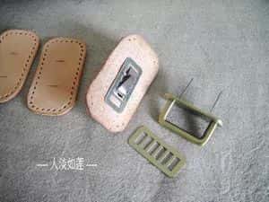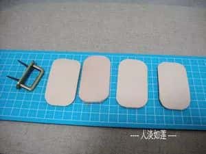 ▼27.裁出四片皮子,準(zhǔn)備把口型吊扣裝上去: