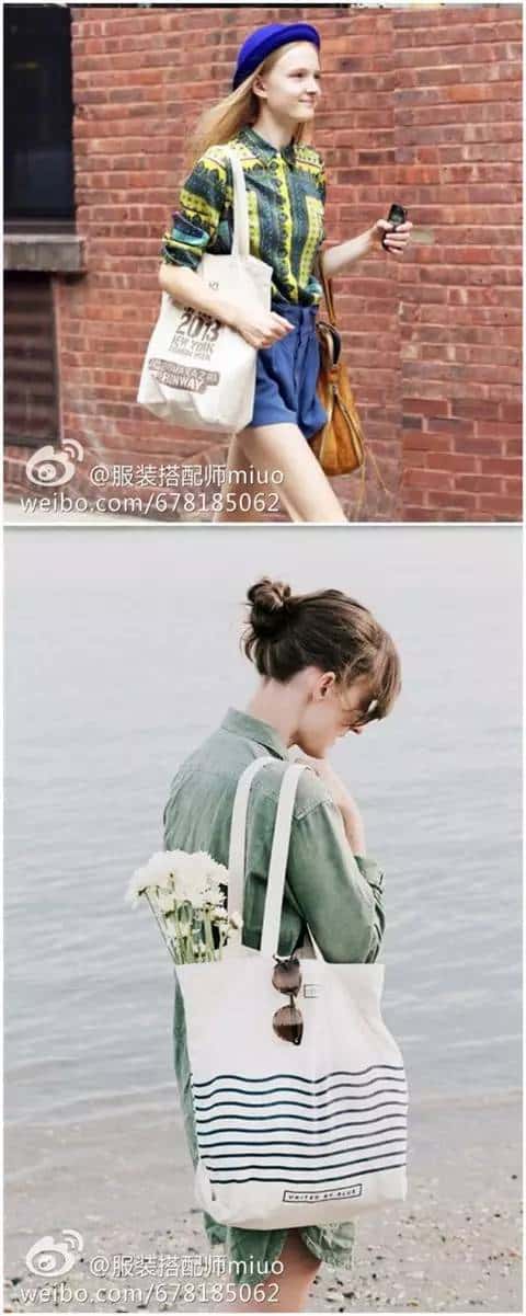 帆布袋不僅可以配簡約休閑風,連復古清新文藝范也可以融合~