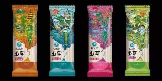 包裝風格是濃濃的中式插畫風。猴子,麋鹿,塔等富有中國特色的元素被應用到插畫中,充滿靈氣,有種神話傳說的味道。