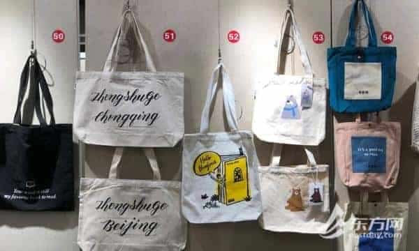 帆布袋結實耐磨、美觀耐用,尺寸大多能容納大16開本多本書,可反復使用。每家書店的帆布袋都有獨立主題,譬如上海新華傳媒連鎖有限公司帆布袋的主題是“閱”希望、“閱”人生,新華傳媒南村映雪文化書店的帆布袋主題是日出東方;上海圖書有限公司帆布袋的主題是桐陰論畫、讀書·一輩子;博庫書城的帆布袋是書袋熊、書籍;衡山·和集帆布袋的主題是Mix Generation;鐘書閣帆布袋種類很多,主題為泰戈爾詩句、名人名言、貓奴日記、好日子、城市字母等。思南書局、朵元書院、上海香港三聯書店、現代書店的帆布袋等都印著書店的LOGO。“我們從今年年初下架了一次性塑料袋,有一整面墻二三十款環保袋供讀者選擇。”參加評選的鐘書閣靜安芮歐店店長原揚表示,由于書的重量比較重,包袋的材料十分講究,與普通商場有區別。這次將上海各大書店的特色包袋看個遍,一邊看一邊學習,了解其他書店的特色。