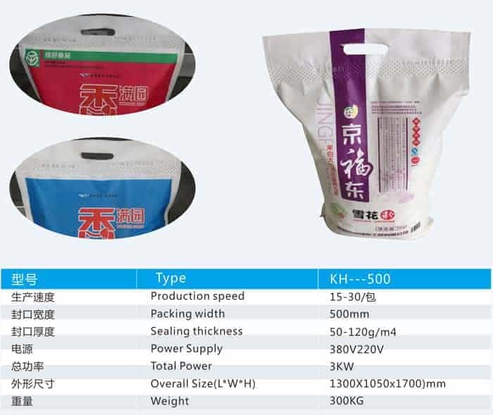 該機適用原材料無紡布 適用于專業無紡布面粉袋封口。該機有幾大優點。焊接美觀。牢固。防止漏面。代替傳統工藝。可節約縫紉線。合格證。噴碼機。可省一系列耗才。本機采用PLC控制器。觸摸顯示屏。步進電機拉料定長、大功率超聲波焊接。自動計數即可設定計數報警等工控裝置。準確 、'平穩.、高效率、是目前國內外最先進的封口機、操作簡單。安裝方便。等幾大尤點。