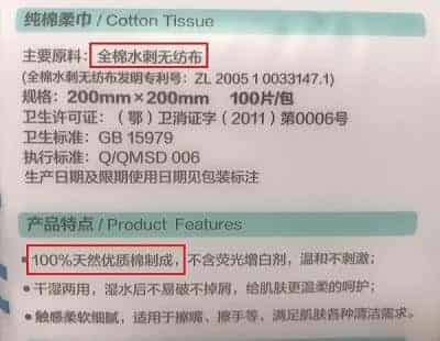 當然,除了上述化學纖維以外,棉、麻、毛、絲等天然纖維也可以用來生產無紡布。有些人往往一提到無紡布就認為是化纖產品,這其實是對無紡布的一種誤解。和我們平時穿的衣服面料一樣,無紡布也有化纖無紡布和天然纖維無紡布之分,只不過化纖無紡布更常見而已。比如下圖中這款棉柔巾就是用天然纖維——棉花制成的無紡布。(這里學姐要特別提醒大家,不是所有叫“棉柔巾”的產品都是用“棉”纖維制成的,市面上也有一些棉柔巾其實都是化學纖維制成的,只不過觸感比較像棉而已,大家選購的時候一定要看準成分)