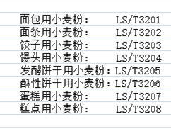 GBGB/T 8608為低筋面粉;GB/T 1355為中筋面粉;GB/T 8607為高筋面粉;LS/T 3201-3208專用小麥粉。