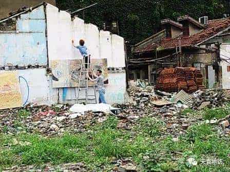 外國藝術家拍攝下M120(即莫干山路120號面粉廠舊址)拆除時的情形