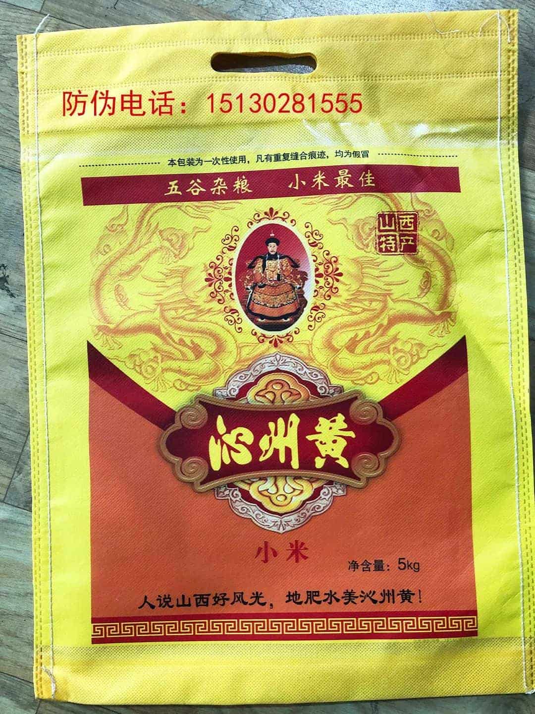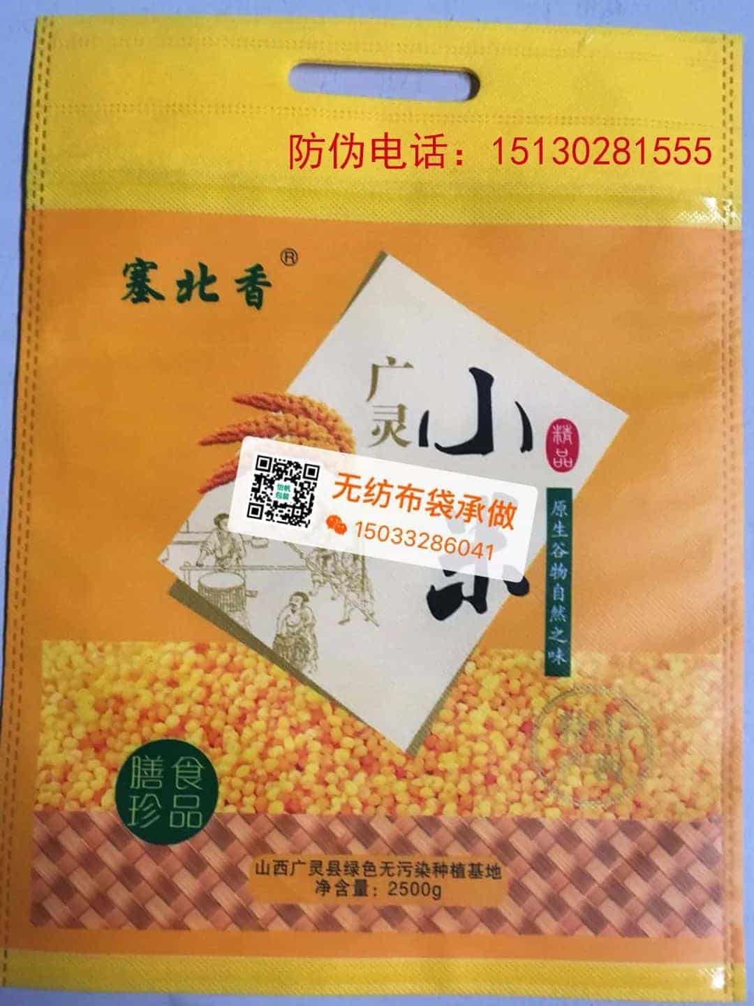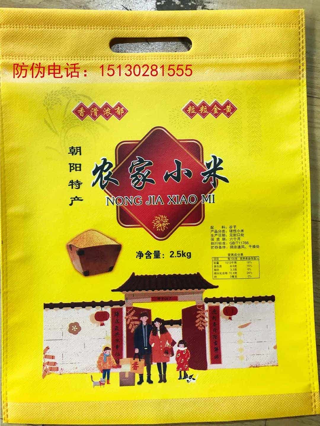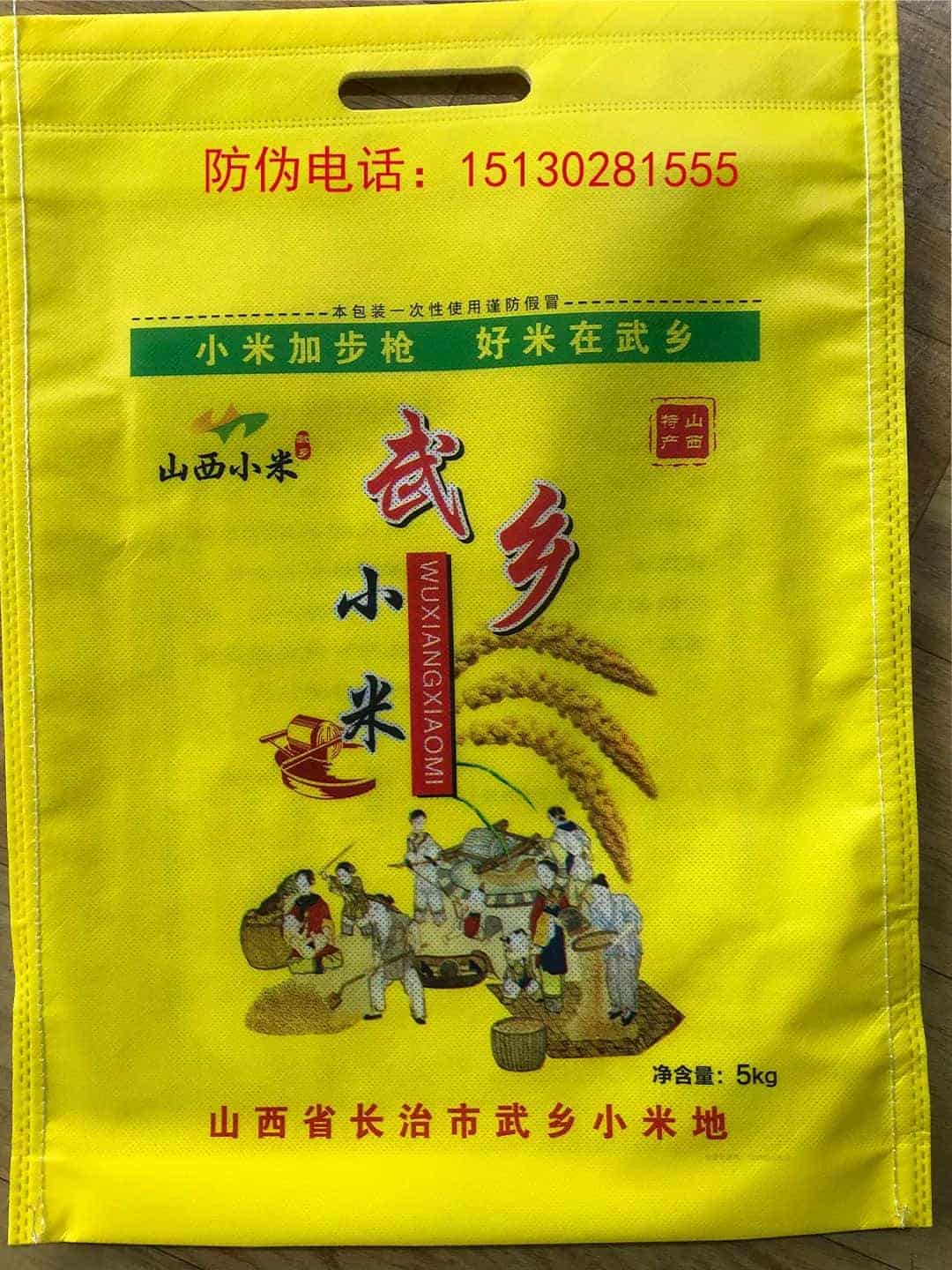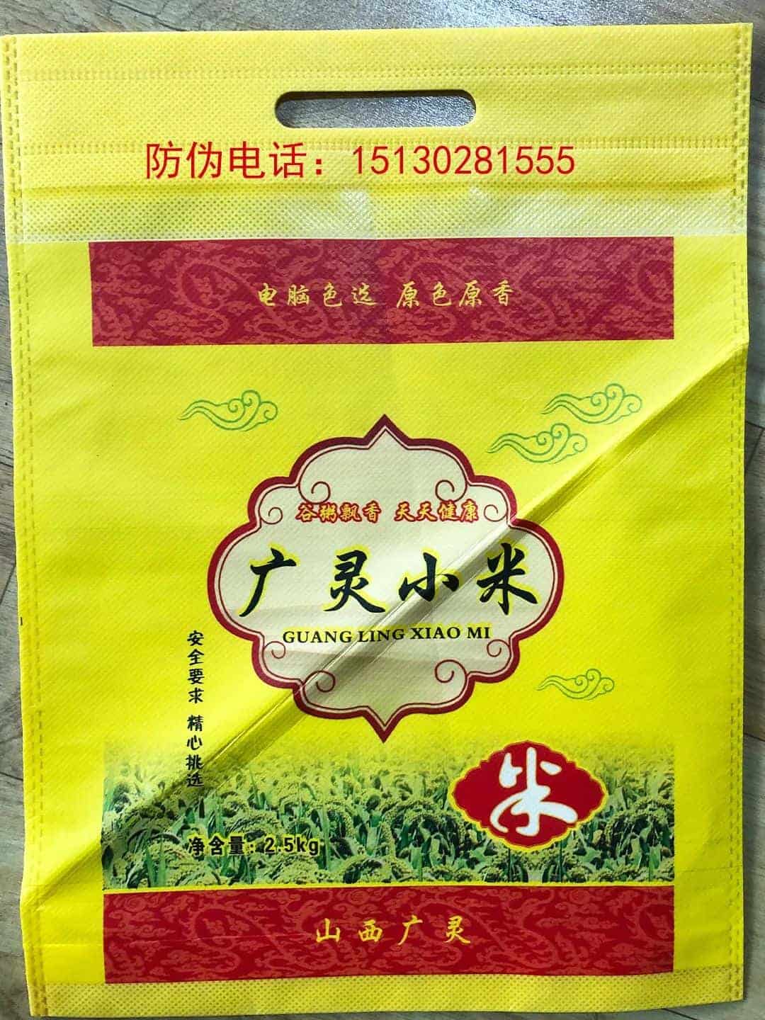 廠家主營產品:無紡布面粉包裝袋,無紡布大米包裝袋,小米袋,無紡布雜糧袋,無紡布手提袋,無紡布廣告袋等無紡布袋系列產品。無紡布面粉袋包裝規格有500克,1000克,2.5公斤,3公斤,5公斤,10公斤等,特殊 規格可以來電定做。