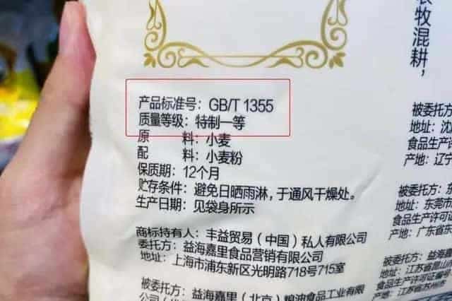 買高筋面粉的時候,我們要看一下包裝背面,有一欄執行標準。