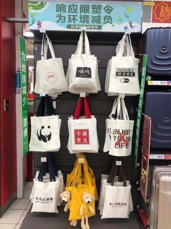 店長張瑞卿告訴記者,對于沒帶購物袋的消費者,他們也提供了多種選擇: “我們有環(huán)保袋可重復使用,目前是4塊9一個;還有10個種類的帆布袋,價格19.9元起;有些老年顧客可能覺得太貴了,我們在服務中心也免費提供給他紙箱,買完之后可以到服務中心去打包。”