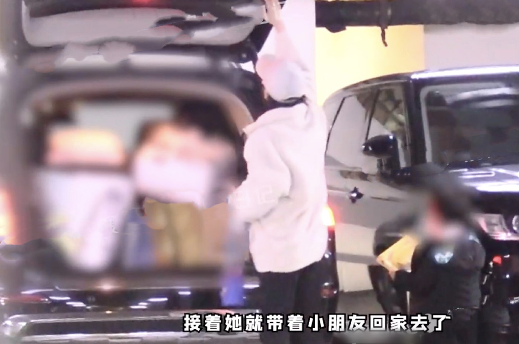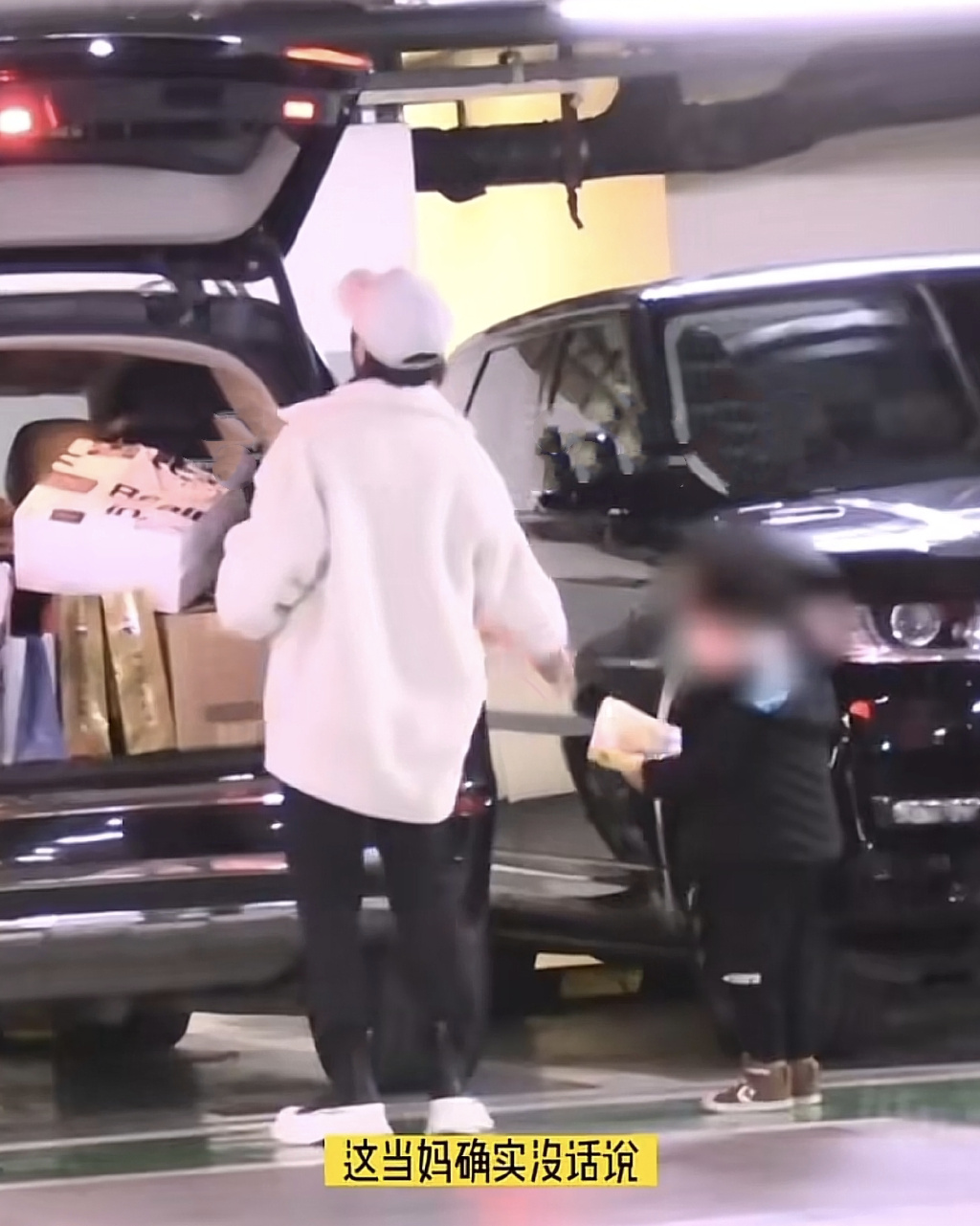 找到自己的車后,謝楠打開了后備箱,從里面拿出了一個(gè)玩具遞給兒子。