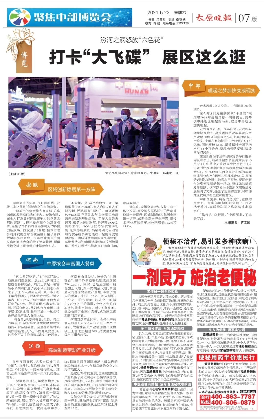 六省展區,令人流連。中部崛起,值得期待。在今年3月發布的國家“十四五”規劃和2035年遠景目標中明確提出,要開創中部地區崛起新局面,推動中部地區加快崛起。六省聞令而動。今年以來,六省新興動能快速增長,高技術制造業或高新技術產業增加值全部實現20%以上強勁增長。一季度,中部六省的地區生產總值達5.4萬億元,同比增長22.4%,增速超過全國平均水平4.1個百分點,呈現出強勁反彈、接續向好的勢頭。在國新辦為本屆中部博覽會舉行的新聞發布會上,商務部副部長王受文表示,3月30日,中共中央政治局會議審議了《關于新時代推動中部地區高質量發展的指導意見》。中部地區作為全國大市場的重要組成部分和空間樞紐,要找準定位,發揮優勢;要著力推進內陸高水平開放;要把創新作為引領發展的第一動力,堅持綠色低碳發展新路。這可以說為中部地區高質量發展指明了方向,提出了更高的要求,對中部地區發展具有里程碑的意義。中部博覽會,展現的是現實,憧憬的是夢想。在中部崛起的新征程上,六省攜手前行,高質量發展之路必將越走越寬廣。“獨行快,眾行遠。”中部崛起,不止是夢想。太原晚報記者 何寶國牛晨陽 鄧寅明 攝打開名片關注▼往期精彩內容▼