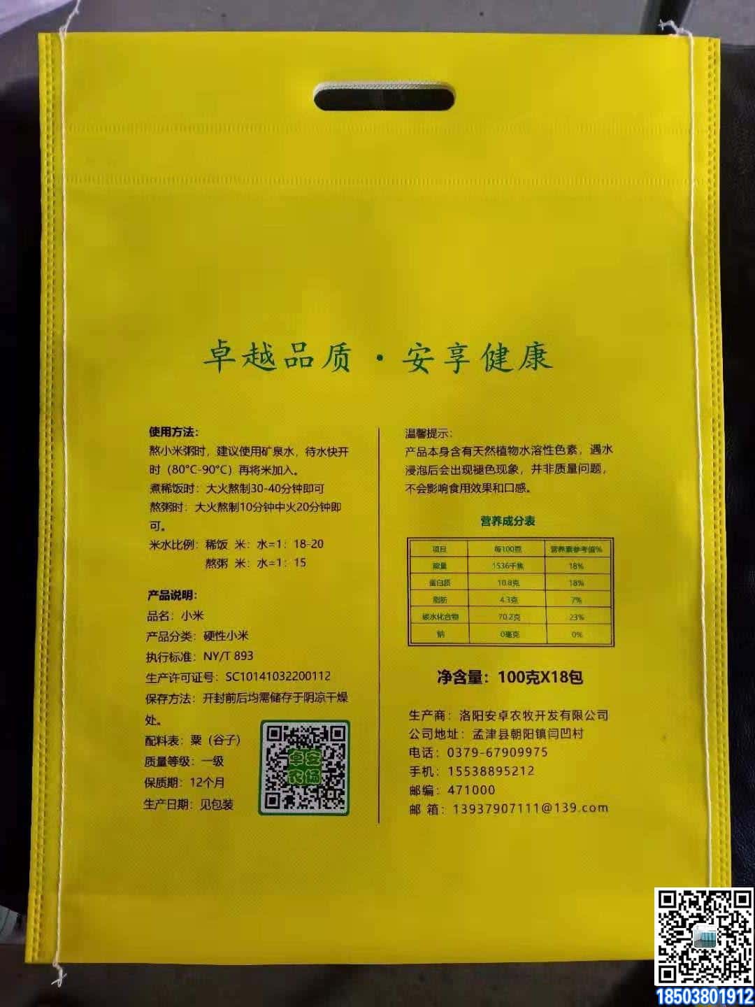 絲印無紡布面粉袋
